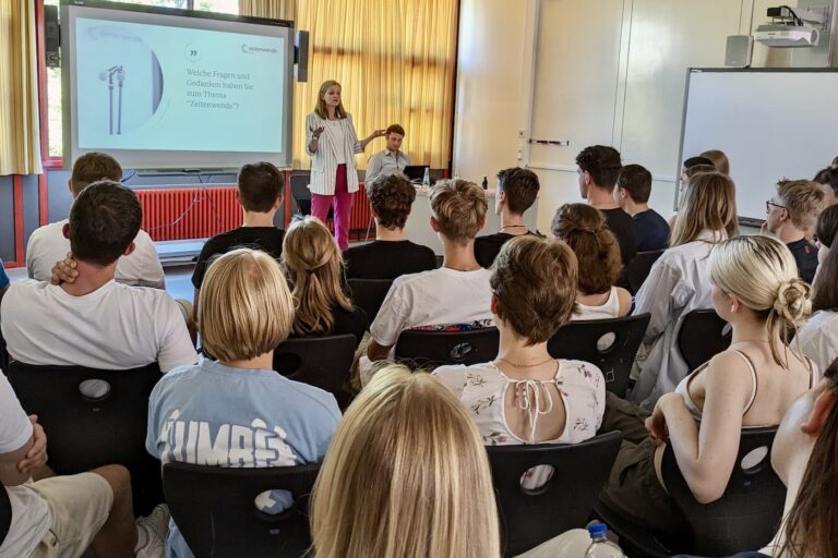 Unter dem Format „Zeitenwende on tour“ der Münchner Sicherheitskonferenz geht es  um den Austausch mit Bürger*innen angesichts der veränderten internationalen Situation seit dem Ausbruch des Krieges in der Ukraine. Quasi als Ergänzung zur Diskussionsveranstaltung mit viel Prominenz und Experten*innen, die am gleichen Tag abends im Weltkulturerbe „Völklinger Hütte“ stattfand, suchen die Veranstalter*innen auch den Kontakt zur jungen Generation, zu Schulen. So waren die beiden Referent*innen Frau Witte und Herr Rosenkranz am Dienstag, dem 12. Juli 2023, an unserer Schule und stellten sich den Fragen unserer Schüler*innen.