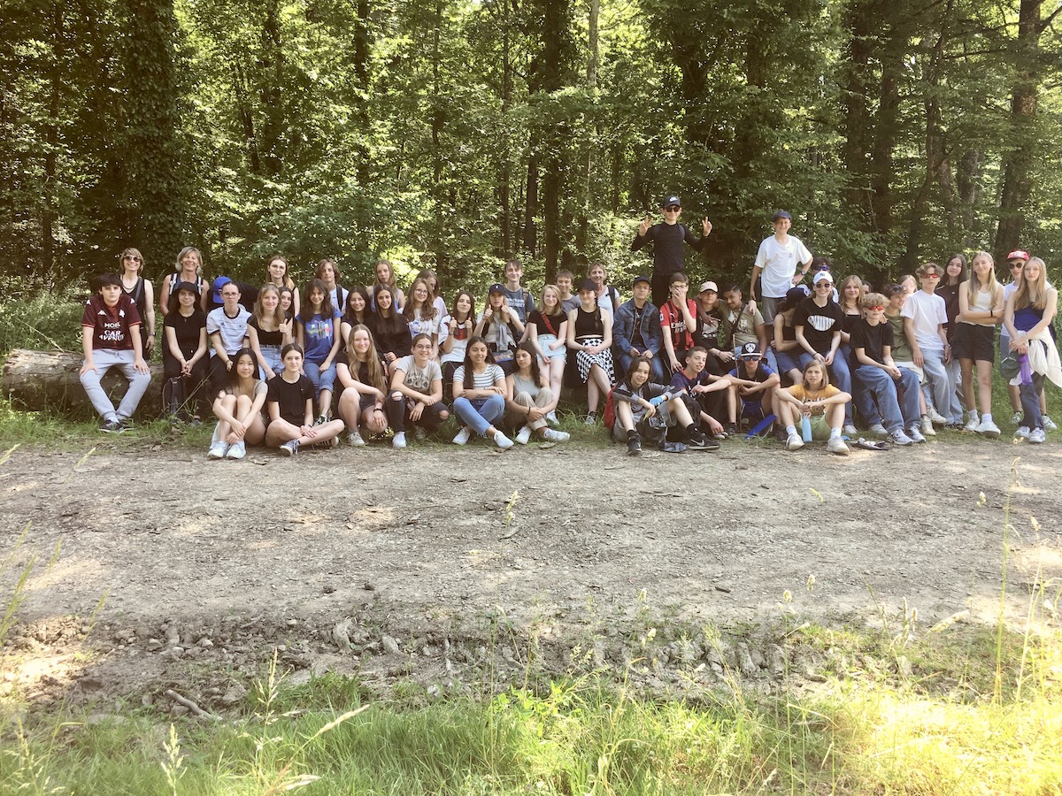 Bereits am 5. Und 6. Juni ging es los nach Frankreich, eine Stunde Fahrzeit mit dem Bus bis nach Rémilly. In diesen zwei Tagen erwartete uns ein von der französischen Austauschschule geplantes Programm mit vielen sportlichen Elementen. Viele davon wurden in Gruppen absolviert, bei dem der Austausch in deutscher und französischer Sprache eine große Rolle spielte. Nach dem Mittagessen in der Kantine nahmen wir an dem Projekt „La marche pour le climat“ vom deutsch-französischen Jugendwerk teil, Ziel war es viele Kilometer zurückzulegen und dabei Müll aufzusammeln. Obwohl wir im Wald nicht viel Müll fanden, nahmen wir erfolgreich an dem Projekt teil und erhielten ein Zertifikat. Zusätzlich beantworteten wir einige Fragen bei denen Orientierung, wie kulturelles Wissen gefragt wurde.