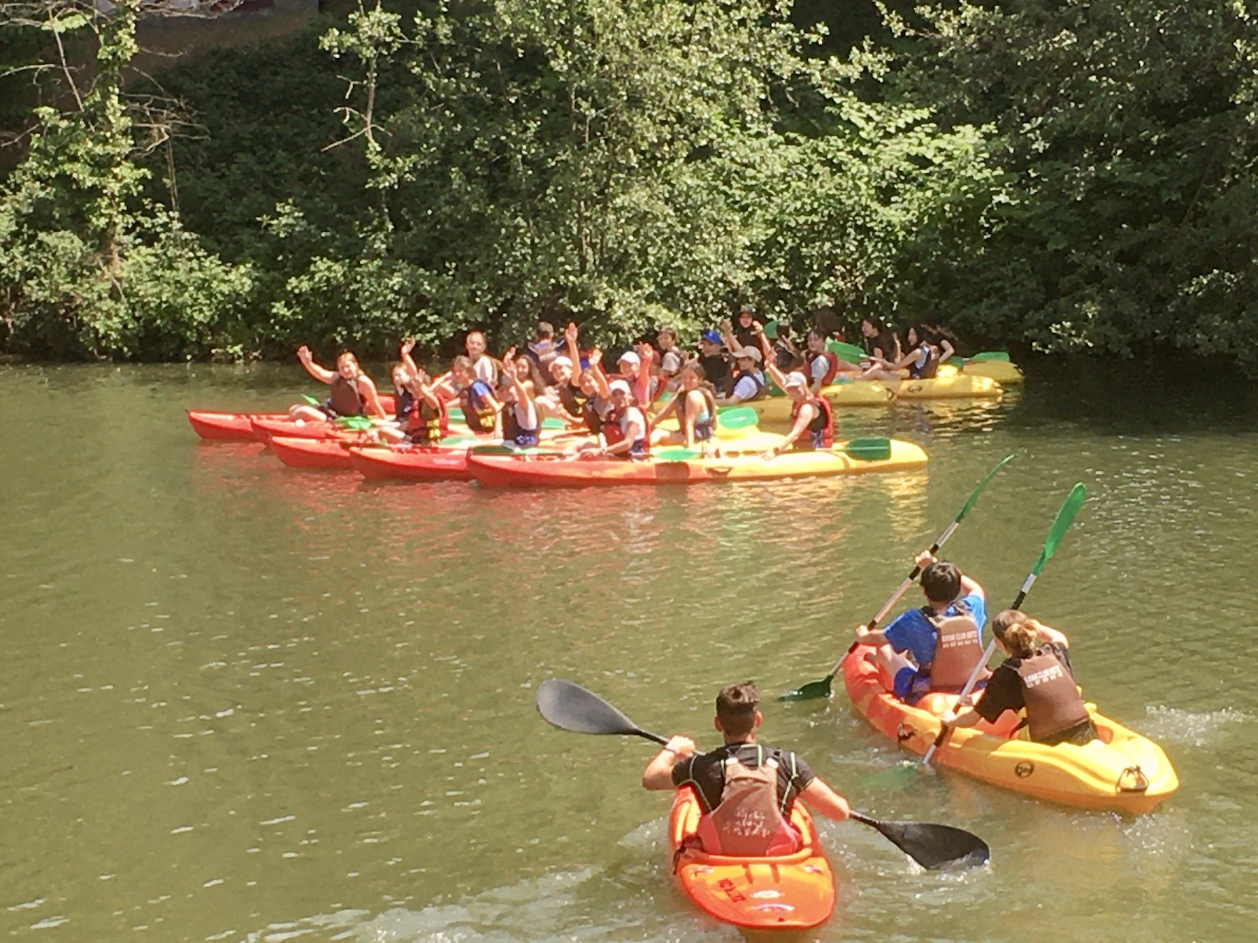 Folgend bekamen wir einen individuellen Einblick in das Familienleben unserer Austauschpartner, indem wir kulinarisch wie auch kulturell viel Neues entdecken durften. So wurden Ähnlichkeiten, aber auch Unterschiede deutlich. Der folgende Tag bot uns einen Ausflug nach Metz, bei dem wir in zwei Gruppen viele Spiele und Herausforderungen annehmen konnten. Ein Highlight war die Kajak-Tour auf der Mosel, die uns sogar in die Innenstadt von Metz führte. Auf dem Wasser wurden uns zusätzlich Aufgaben im Zusammenhang mit Gleichgewicht und Kooperation gestellt. Um 15 Uhr verabschiedeten wir uns schlussendlich von unseren Austauschpartnern und machten uns auf die Heimreise.