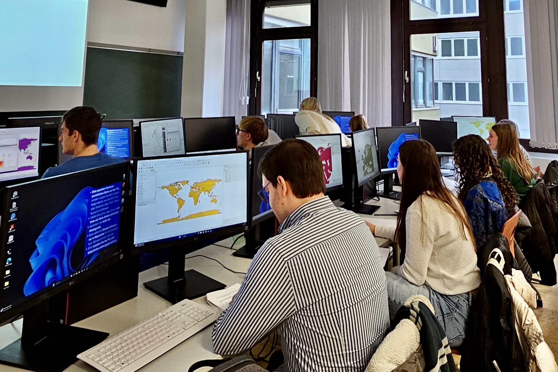 Anschließend nahmen wir an einem GIS-Workshop (GIS = geographisches Informationssystem) unter der Leitung von Frau Dr. Carol Ludwig teil. Dabei konnten wir selbst am Computer arbeiten, Karten erstellen, verschiedene Ebenen (Layer) übereinanderlegen und Daten kartographisch darstellen. Durch mehrere Übungsaufgaben lernten wir den Umgang mit diesem digitalen Programm kennen und erzielten am Ende alle gute Ergebnisse.