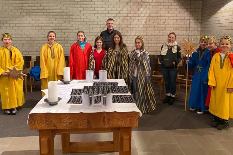 Sie überbrachten die Segenswünsche der „Heiligen Drei Könige“ und die zuvor am 6. Januar 2023 im Frühgottesdienst in unserer Kapelle gesegneten Aufkleber.