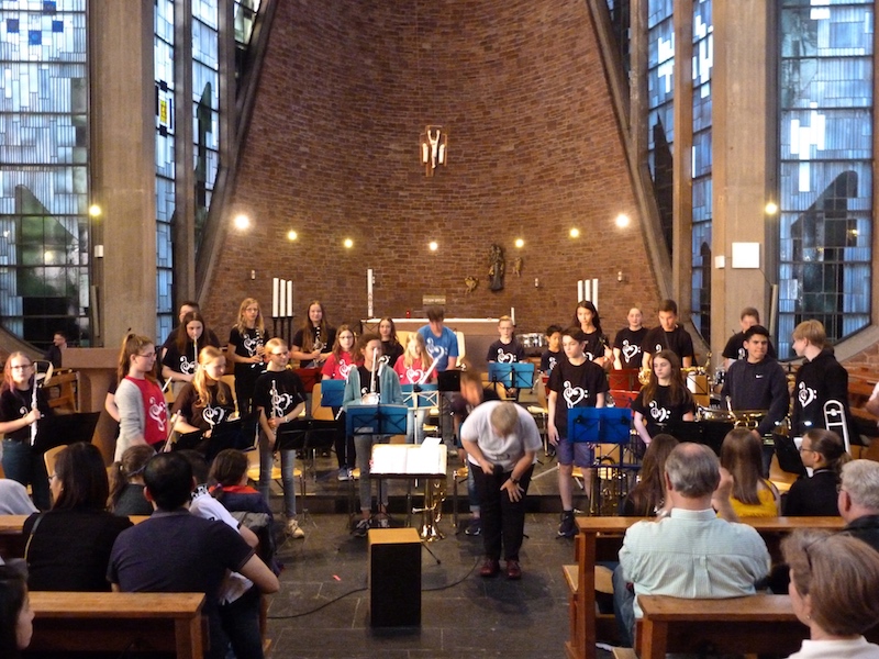 Zum 60jährigen Jubiläum meiner Heimatgemeinde, Maria Königin Saarbrücken, war es für mich als Ehemaligen der Willi-Graf-Schulen eine besondere Freude, dass der Festabschluss von den beiden Juniorbands der Willi-Graf-Schulen bestritten wurde (Bläser und Streicher). Originell, kurzweilig und sympathisch anmoderiert, wurden wir Zuhörer – in einer voll besetzten Kirche – durch ein reichhaltiges und vielfältiges Repertoire geführt, und ich war begeistert zu hören, wieviel sich in so kurzer Zeit, mit der richtigen Förderung und hohem Engagement mit jungen Schülern erreichen lässt.