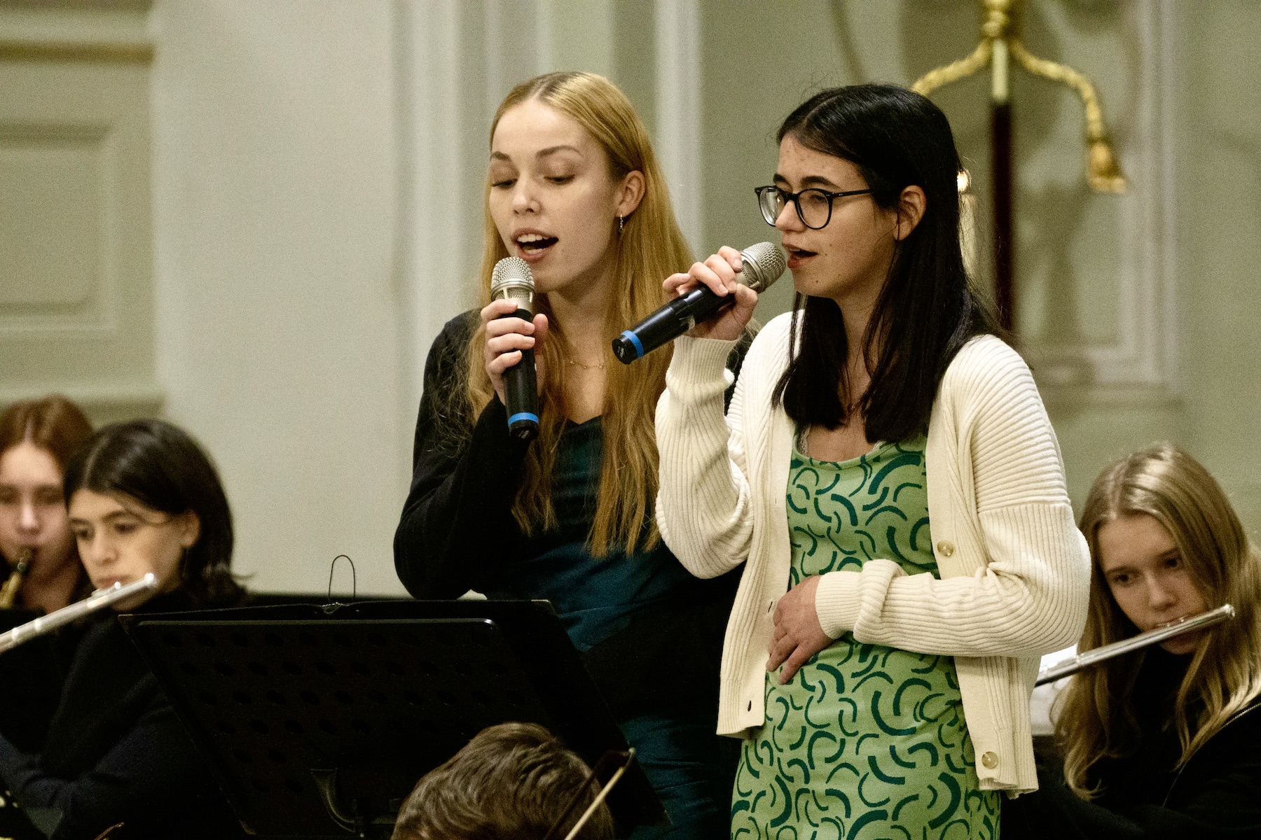 Am 12. Dezember 2022 fand in der Basilika St. Johann wieder ein musikalisches Abendlob zum Advent mit der Concert Band der Willi-Graf-Schulen statt. „Nachts am Himmel tausend Sterne“: So lautete das Motto des Gottesdienstes, den unser Schulpfarrer Bernd Schütz gemeinsam mit unserer Orchesterleiterin Julia Lichtenthal geplant hatte. Mit beeindruckenden Klängen wurden die Gottesdienstbesucher in eine vorweihnachtliche Stimmung versetzt. Neben der Concert Band wirkten diesmal auch einige Solisten an der Gestaltung des Abendlobs mit. So der Organist Frederic Horf, der an der Basilika-Orgel musizierte und ihr mal festliche, mal meditative Klänge entlockte. Er spielte unter anderem das berühmte Werk „Nun komm, der Heiden Heiland“ BWV 659 von Johann Sebastian Bach und einige Choralbearbeitungen des britischen Komponisten Robert Jones. Insgesamt war die angelsächsische Weihnachtsmusik in diesem Abendlob sehr präsent: Dies wurde auch durch die ganz zu Beginn erklingende feierliche, von Paukenwirbeln und Trompeten begleitete englische Weise ,,Once in Royal David ́s City“ deutlich. Ein erster Höhepunkt des Abends war das von Miriam Köhler wunderschön gespielte Konzert für Harfe und Streichorchester in G-Dur von Georg Christoph Wagenseil. Wie beeindruckend es war, dass Miriam ihrer Harfe wahrhaft magische Klänge entlockte! Danach wurde es mit Philipp Stopfords Ave Maria wieder pompös und majestätisch: Anna Surges (ehemalige Schülerin des WGG, Abitur 2022) und Anna Laufer (Klasse 10a), beide Sopran, interpretierten das Werk mit viel Gefühl und so überzeugend, dass die Gottesdienstbesucher sich zu einem spontanen Applaus verführen ließen. Nach diesem Jubelgesang folgte mit der von Melissa Meiser (Klasse 10b) am Klavier brillant vorgetragenen Etüde Nr. 1, op. 9 in As-Dur von Franz Liszt wieder ein eher meditatives Stück, das die Basilika nun wieder in eine ganz neue Stimmung tauchte.