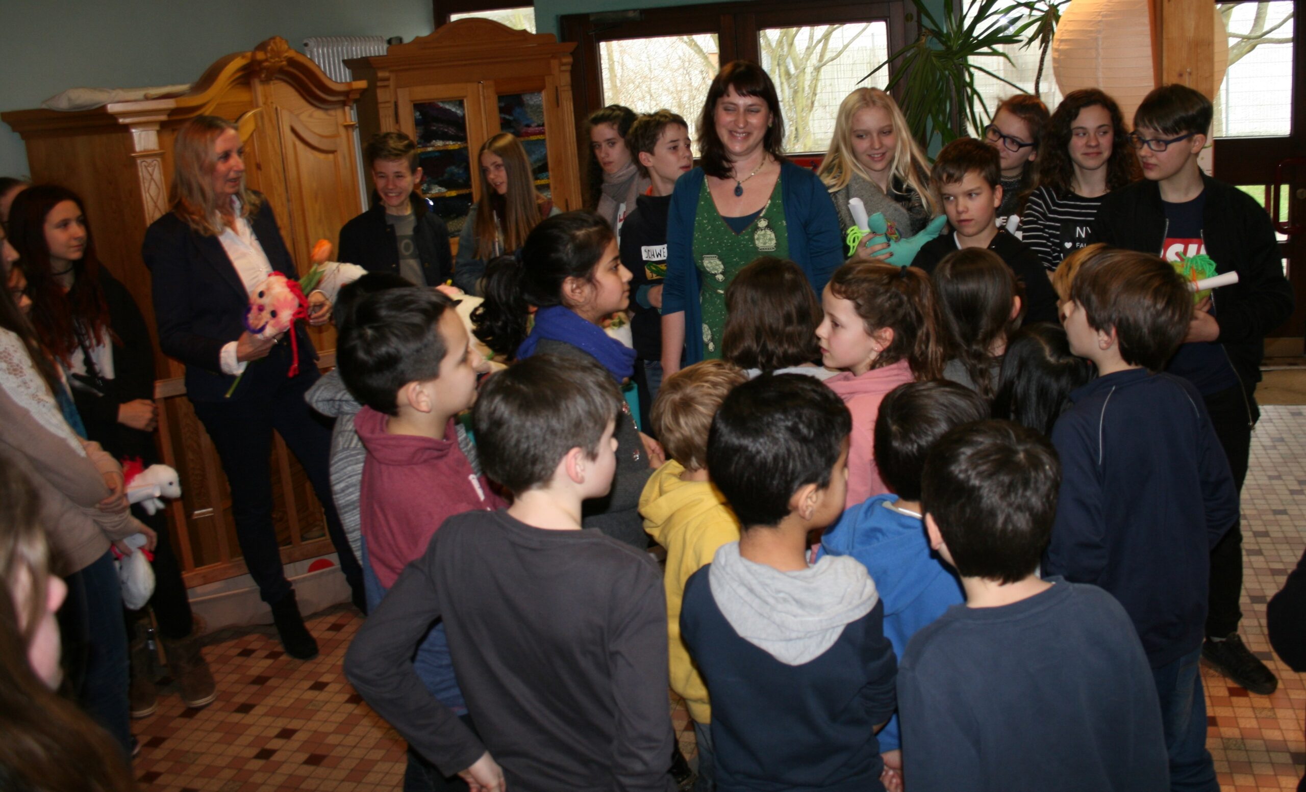 Das Thema „Vielfalt des Zusammenlebens“ hat die Jugendlichen und ihre Lehrerin Tanja Holzer-Scheer seit Wochen inspiriert für 61 Flüchtlingskinder in Lebach Willkommensgeschenke zu nähen, zu zeichnen oder zu basteln. Dabei halfen sich die Kinder gegenseitig mit dem Material und bei der Arbeit. Das Projekt war nun soweit fortgeschritten, dass die entstandenen Geschenke und die dazugehörenden Wunschbriefe persönlich überreicht werden konnten. Dank der Hilfe von Frau Philipczyk (Diakonisches Werk an der Saar) und Frau Jenal (Leiterin der Kindertagesstätte in Lebach) wurden sie am Mittwoch, 17. Februar in Lebach übergeben.