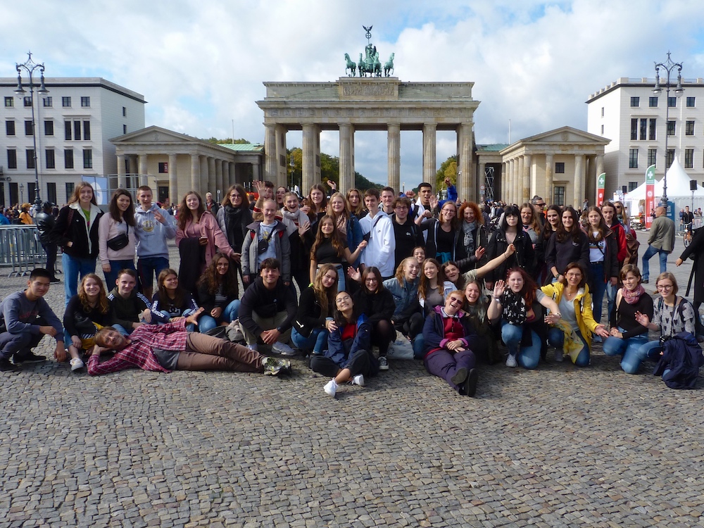 Am nächsten Morgen beim Frühstück wurde verkündet, dass wir an diesem Tag einen Stadtrundgang machen würden. Gesagt, getan. Wenige Stunden später befanden wir uns im Zentrum Berlins und besichtigten die imposanten Bauwerke, wie den Tränenpalast, den Bundestag, das Brandenburger Tor und das Holocaust Denkmal. Wir waren alle sehr beeindruckt von dieser großen Stadt und den Bauwerken. Am Schluss dieses Rundgangs wurden wir entlassen und durften die Stadt auf eigene Faust erkunden. Am Abend dieses Tages fuhren wir zu unserer Partnerschule – der Gustav-Heinemann-Oberschule – und waren Gäste beim „Hausmusikkonzert“. Im Anschluss tauschten wir uns mit einigen bekannten Schülern aus, was im letzten Jahr alles passiert war und freuten uns über das Wiedersehen.