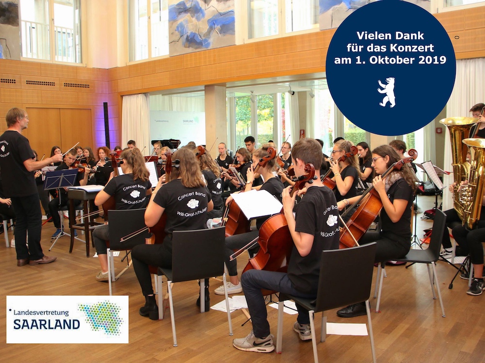 Am Sonntag ging es morgens früh los zur Spree- Rundfahrt (obwohl der Flussname nur eine Verschwörung ist, denn in Wahrheit ist es nur die Berliner Saar ;-). Doch bevor wir den Bus erreichen konnten, mussten wir mit bzw. quer zum Berlin-Marathon hindurch laufen. Sogar Yushiro hat‘s geschafft. Im Anschluss daran gingen wir zu Madame Tussauds Wachsfigurenkabinett. Dort „trafen“ wir einige bekannte Persönlichkeiten und ließen uns mit ihnen ablichten. Auf unserem Weg durch das Museum sahen wir Obama, Papst Johannes Paul II, Ludwig van Beethoven, Günter Jauch und auch Meister Yoda. Danach war wieder Freizeit. Einige gingen in das Körperwelten Museum, andere zum Shoppen und wieder andere was essen. Am nächsten Tag probten wir morgens in der Berliner Partnerschule und gaben am Abend mit der Concertband der Gustav Heinemann Oberschule zusammen ein Konzert in der Martin Luther Gedächtniskirche. Wir spielten Lieder wie Let‘s get Loud von Jennifer Lopez oder die Titelmusik der bekannten Serie: die Flinstones und Vieles mehr. Das Konzert war ein voller Erfolg. Nun brach auch schon unser letzter Tag in Berlin an. Wir gaben ein Konzert in der Saarland- Vertretung, bei dem wir eine Auswahl unserer Stücke spielten und im Anschluss daran die Vertretung gezeigt bekamen. Wir konnten dort eine wundervolle Aussicht vom Balkon über einen Teil Berlins genießen. Den Rest des Tages durften wir gestalten wie wir wollten. Viele sind ganz „normal“ shoppen gegangen, andere waren nachhaltig von Secondhand- zu Seconhandladen unterwegs.