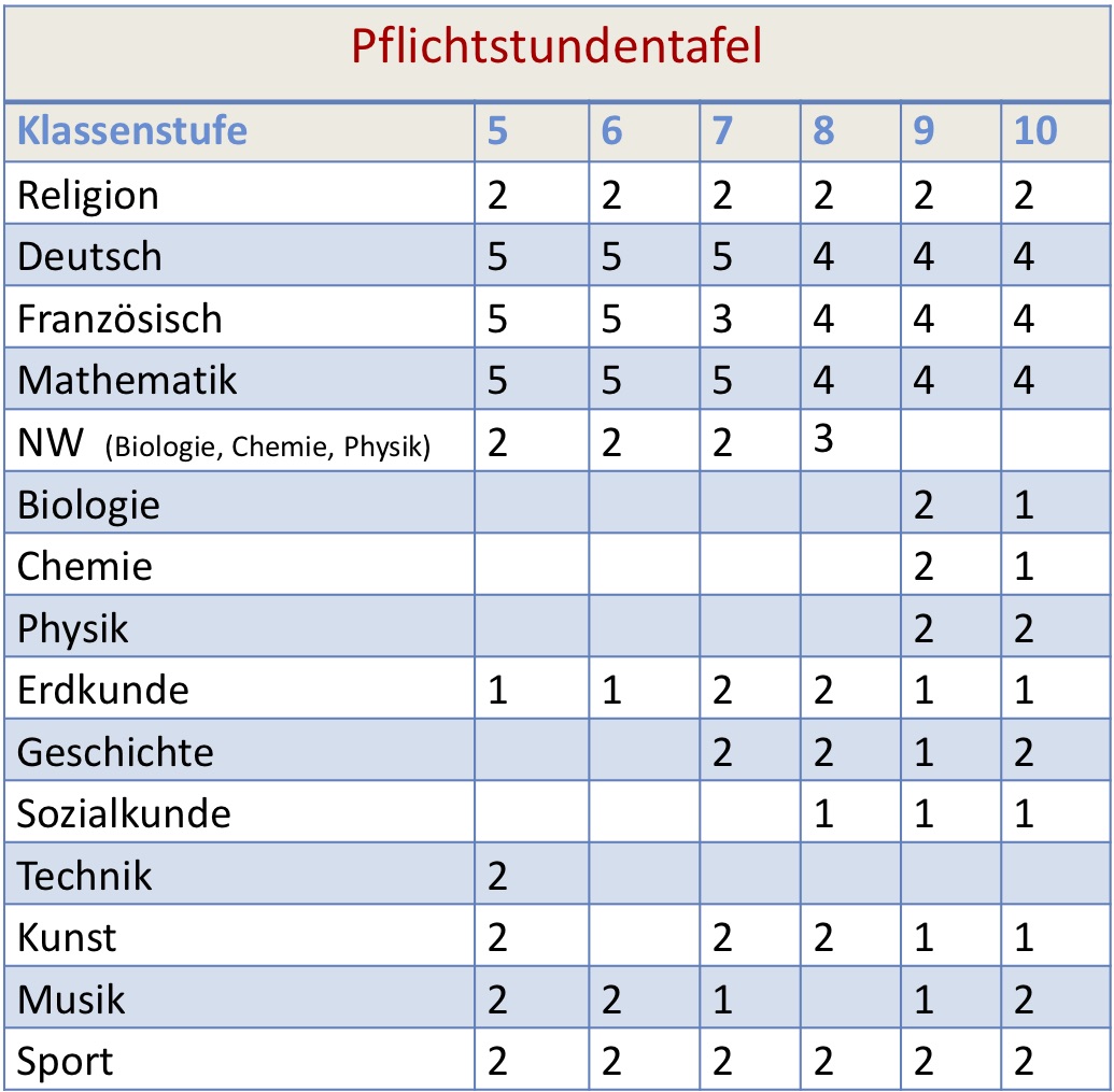 • Stundentafel