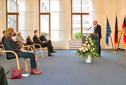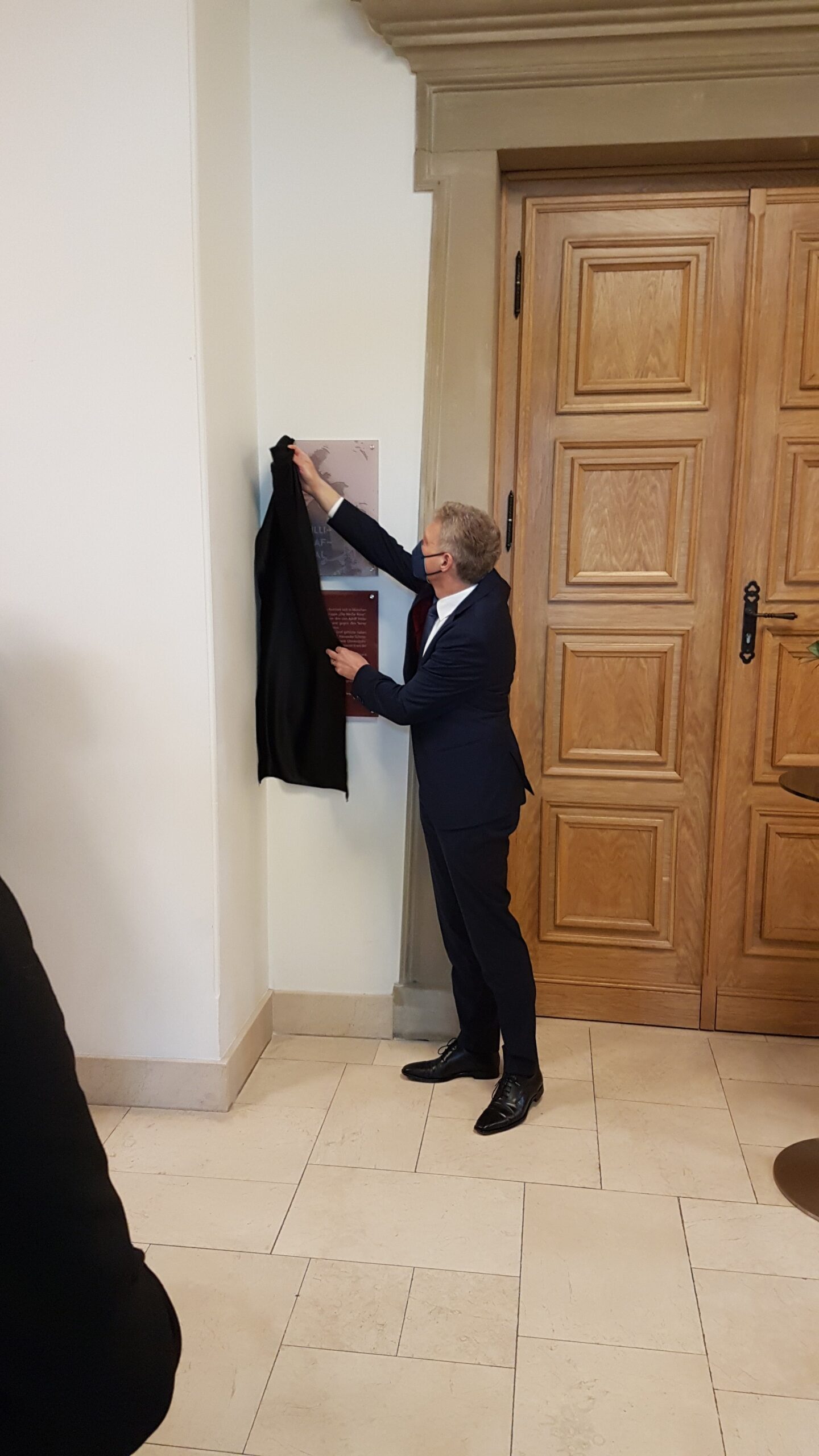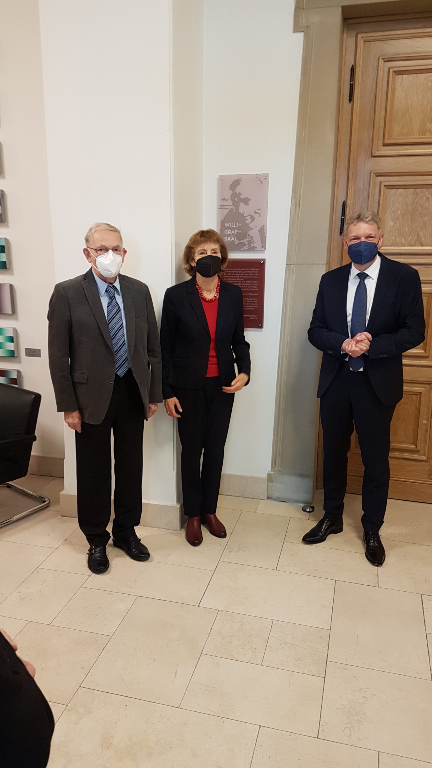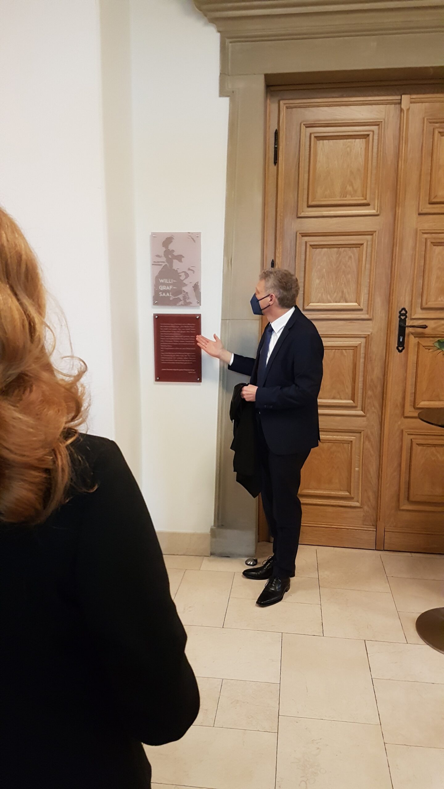 Die Feierstunde zur Saalumbenennung fand wegen der Corona-Pandemie im kleinen Kreis statt. Neben Ministerpräsident Tobias Hans nahmen der Saarbrücker Oberbürgermeister Uwe Conradt, Frau Ordinariatsdirektorin Katja Göbel, Leiterin des Katholischen Büros Saarland, Kirchenrat Frank-Mathias Hofmann und Frau Ricarda Kunger, Vorsitzende der Synagogengemeinde Saar teil. Für die Bischöflichen Willi-Graf-Schulen nahmen die Schulleiter Stefan Kilz (Gymnasium) und Nikolaus Becker (Realschule) teil.