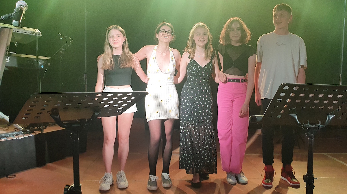 Die Juniorrockband sind: Anna Laufer (Gesang, Gitarre), Anabel Klass (Gesang), Luise Zipp (Gesang), Diana Matvijak (Keyboards), Lionel Berger (Schlagzeug):