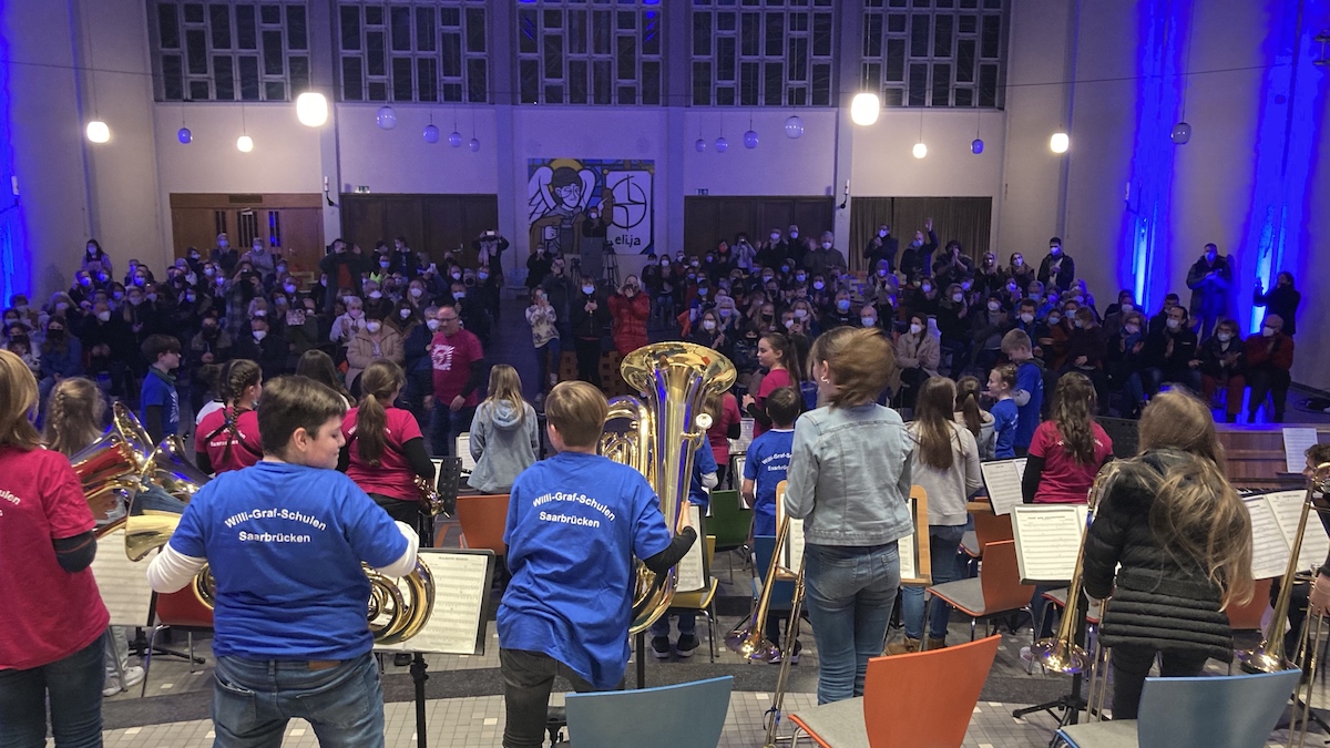 Nach der Pause tritt die Bläserklasse an. Trotz der widrigen Umstände in den letzten 2 Jahren, zeigen sich auch unter den Bläsern erstaunliche Fortschritte. Stücke die erst einige Wochen bekannt und geprobt sind, klappen hervorragend. Die Konzentration ist da und der Wille, dieses Konzert zu etwas Besonderem zu machen.