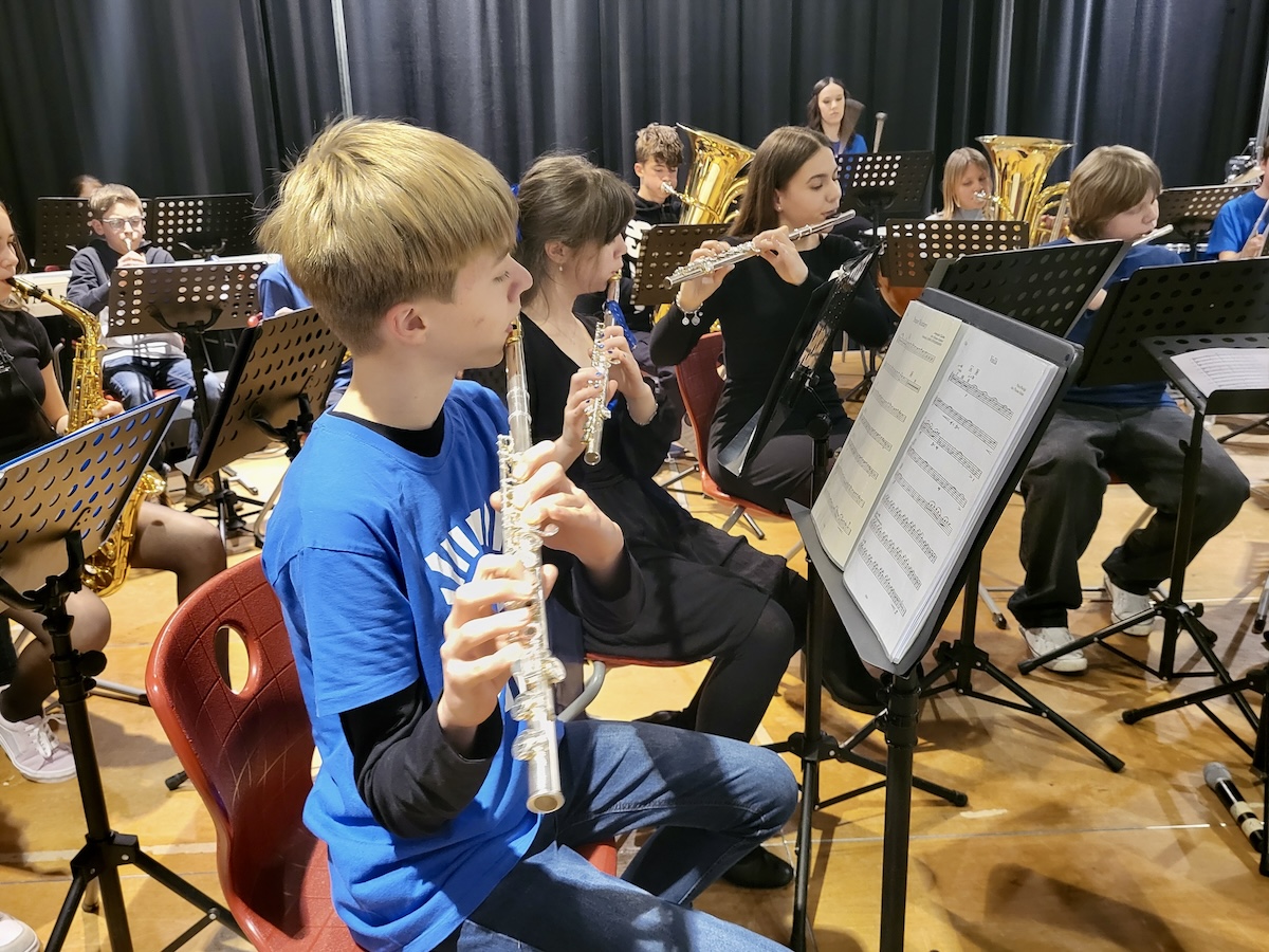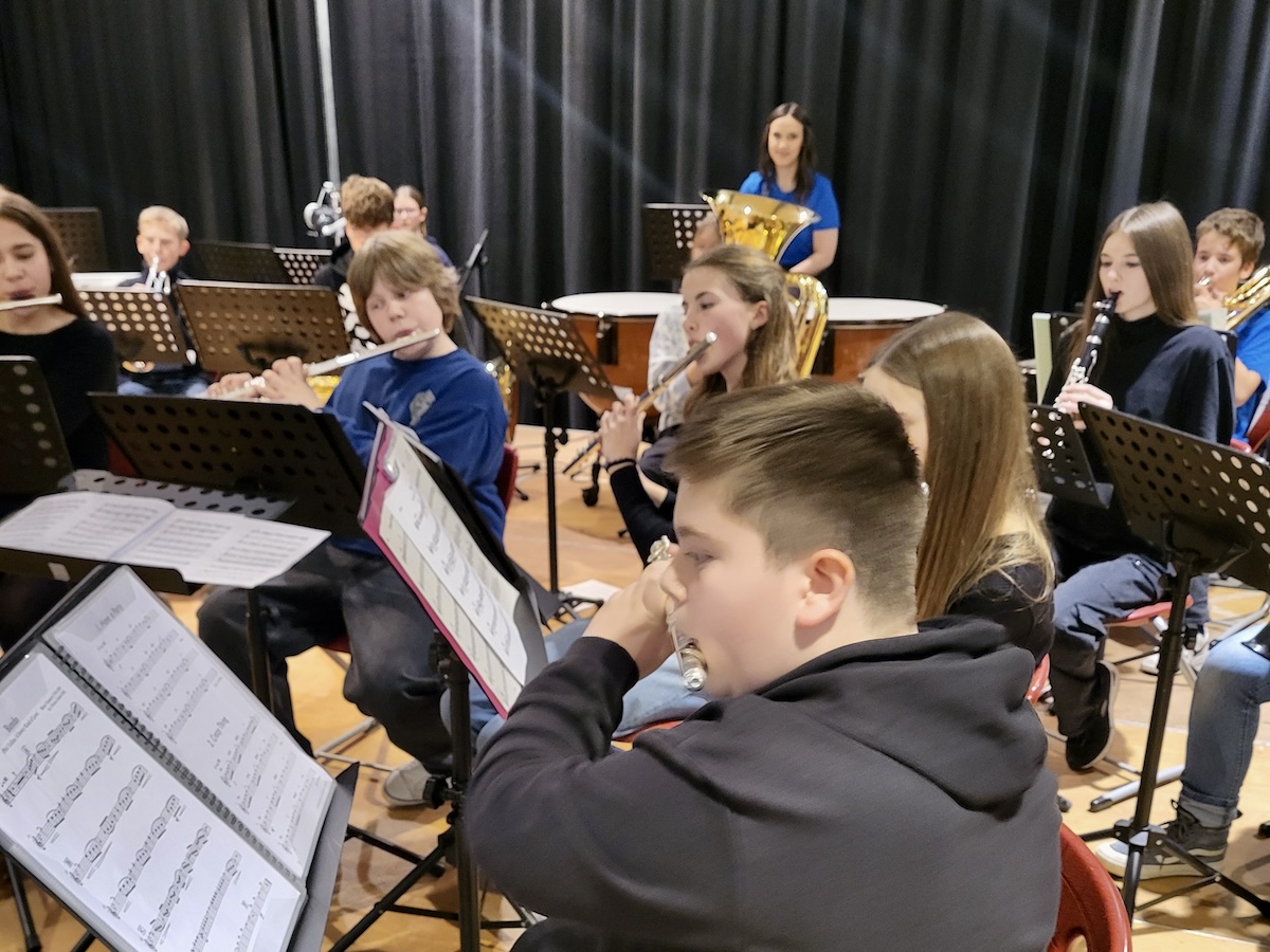Nachdem sich die beiden Formationen von Montag bis Mittwoch in der Jugendherberge Trier verschanzt und unter strengem Ausschluss der Öffentlichkeit und im Schweiße ihres Angesichts ihr neues Programm erprobt hatten, fand am Freitag, den 1. März 2024 das diesjährige Konzert der Juniorbands statt.