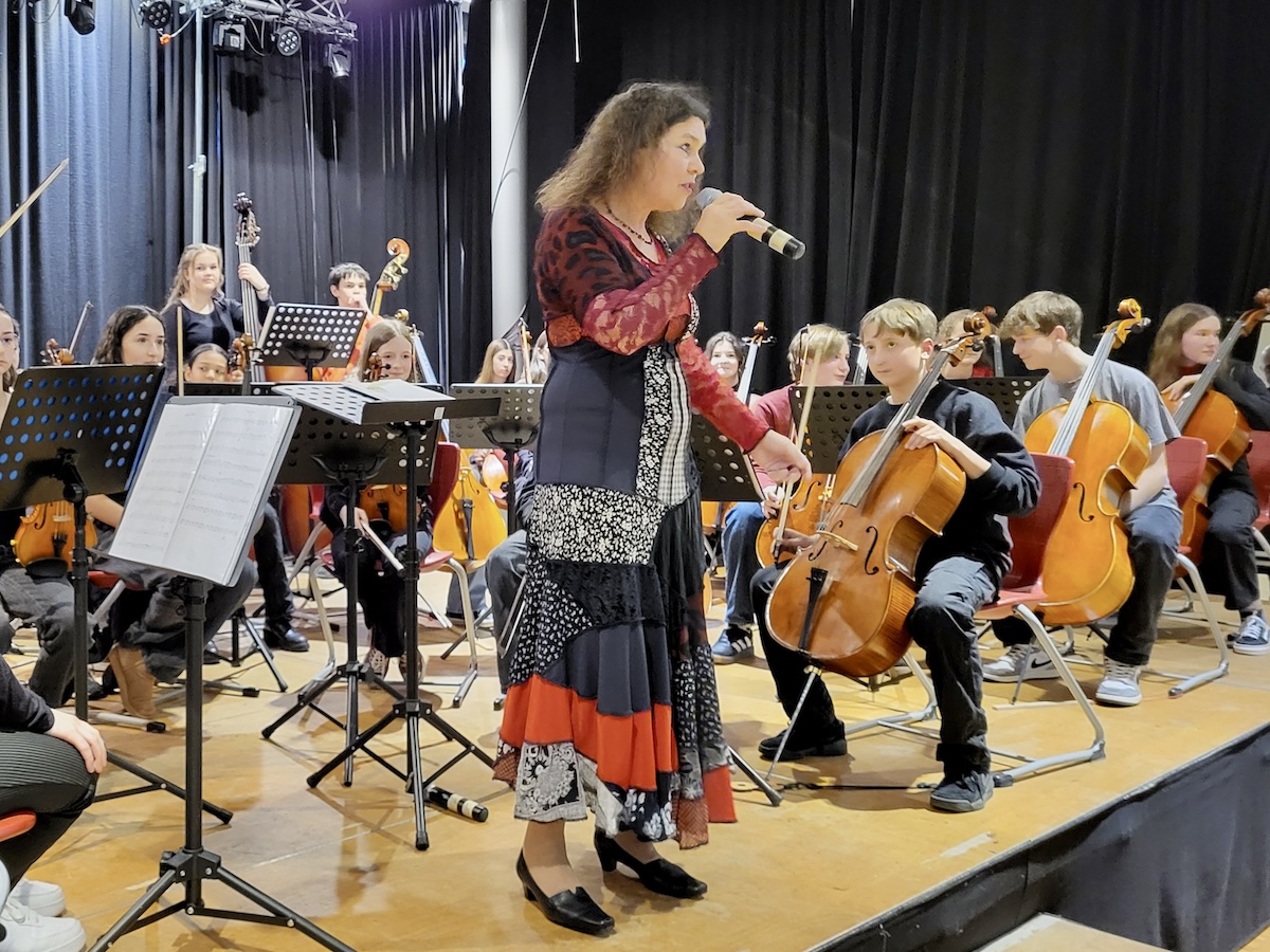 schönen Abend. Außerdem natürlich bei Frau Mertes und Herrn Geibel. Danke auch an Herrn Ringeisen für Bühne, Technik und Ton. Und natürlich an alle, die im Hintergrund wirken und unterstützen: Hausmeister, Kolleginnen und Kollegen, die Schulleitungen, die Instrumentallehrer und nicht zuletzt die Eltern.