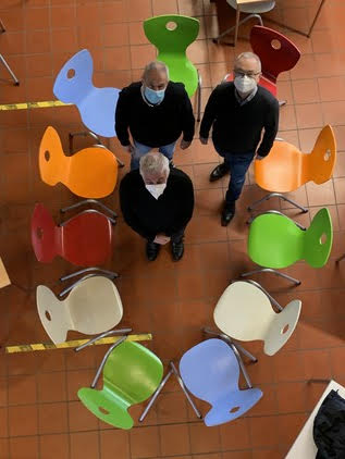 Das Bistro der Willi-Graf-Schulen, in dem täglich bis zu 80 Schülerinnen und Schüler der FGTS ihr Mittagessen einnehmen, ist neu bestuhlt worden. Die bunte Farbenpalette der neuen Stühle, die vom Vorstandsmitglied des Förderkreises und 1. Vorsitzenden der FGTS – Herrn Müller – und den beiden Schulleitern – Herrn Kilz und Herrn Becker – begutachtet wurden, stellt eine erhebliche Aufwertung unserer Cafeteria dar.