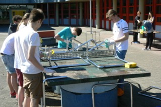 Wir möchten hiermit allen beteiligten Schülerinnen und Schülern für ihren tatkräftigen Reinigungs-Einsatz, dem Schulförderkreis für die Finanzierung und unseren Hausmeistern Herrn Reiter und Herrn Gimmler – ihm insbesondere für die mühevolle Montage der Tischplatten – ganz herzlich danken!