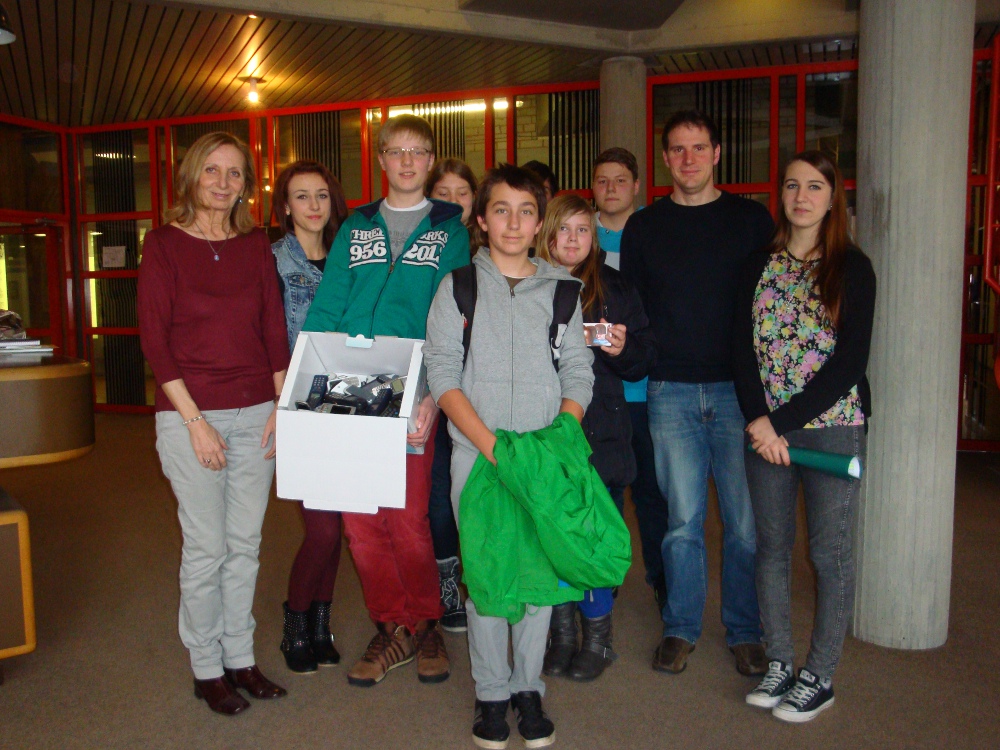 wie Ihr vielleicht schon erfahren oder auf unserer Stellwand gesehen habt, sammelten wir (Schülerinnen und Schüler der Klasse 8r2+Herr Arnold) alte Handys und Smartphones ein.