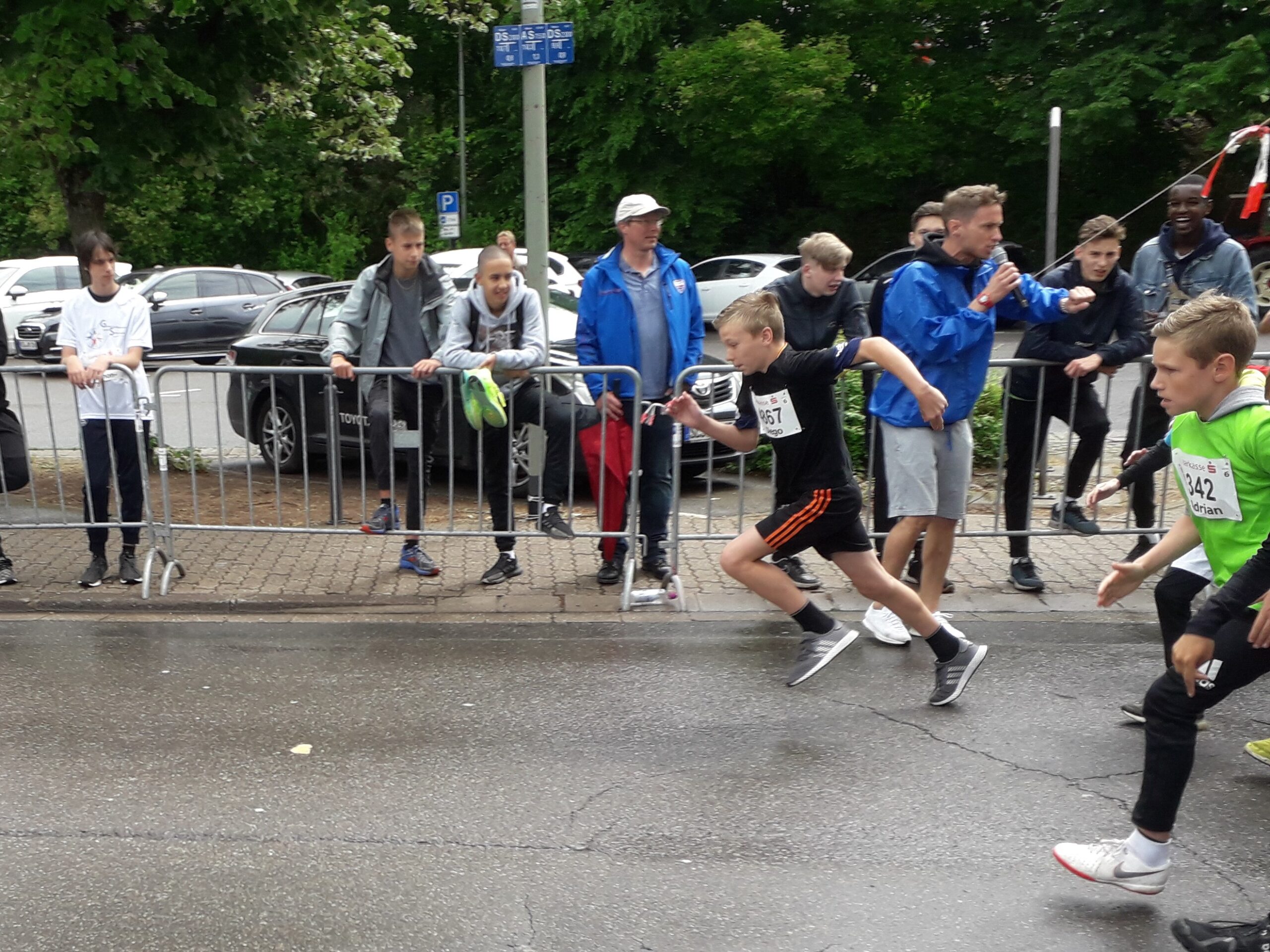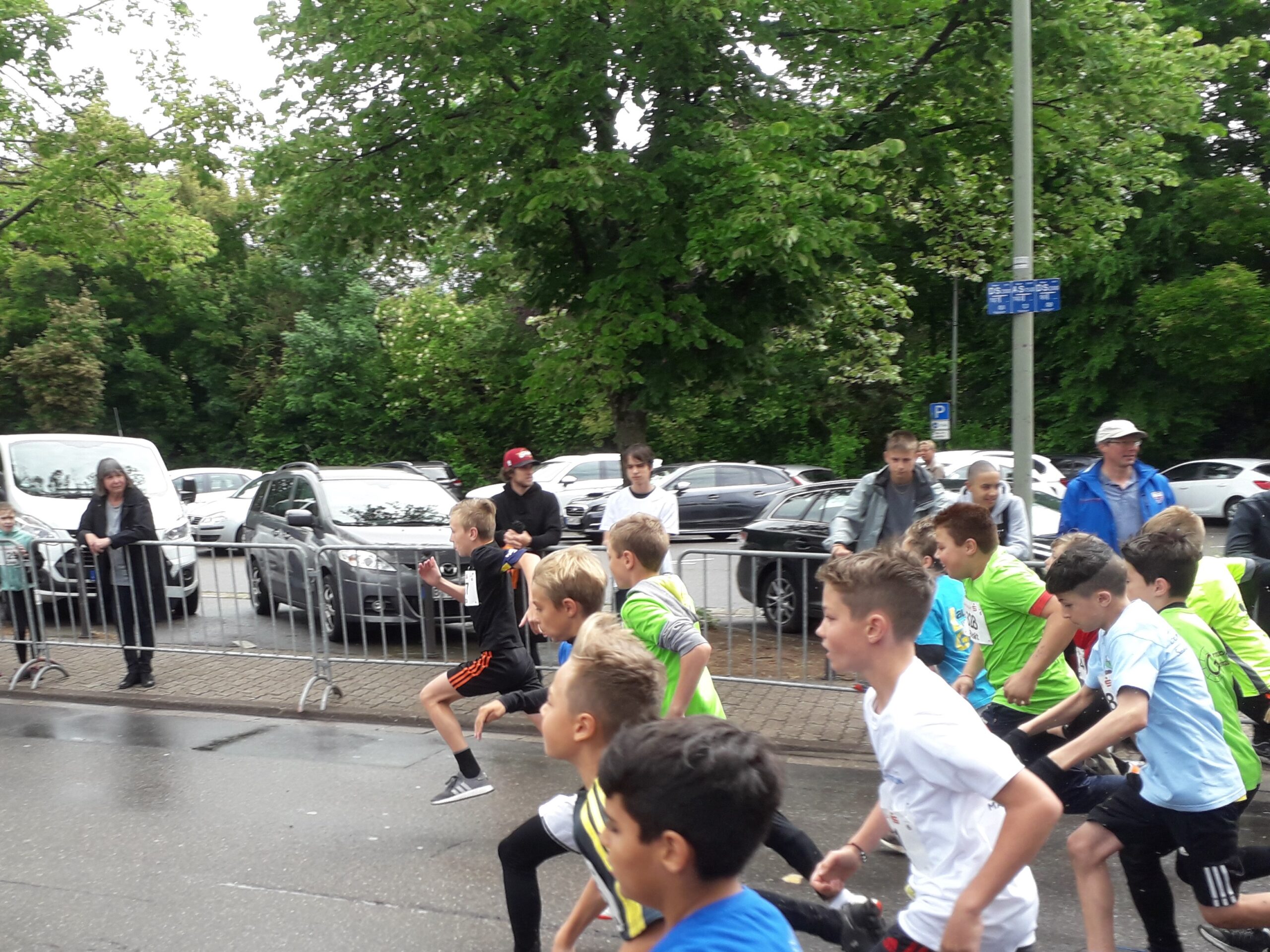 Nach einer kurzen Erholungspause ging es für die ersten Läufer schon los. Das Starterfeld, das nach Jahrgängen und Geschlecht getrennt war, bestand meist aus ca. 400 Kindern pro Lauf. Obwohl so viele Kinder dicht gedrängt vor der Startlinie standen und gemeinsam losliefen, verletzte sich dank der guten Organisation und vieler Helfer niemand. Schon nach ein paar Metern entzerrte sich das Feld und die schnellsten Läufer hatten die Strecke über knapp 2,2 km schon nach etwa 6-7 Minuten hinter sich.