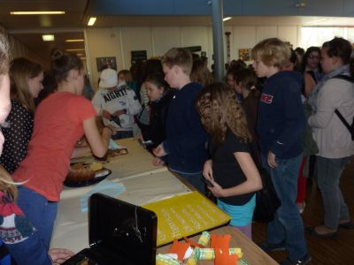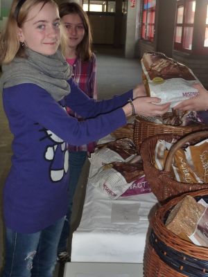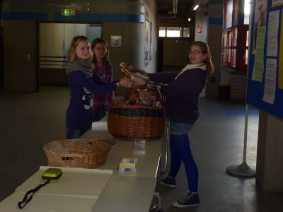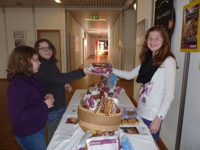 Jeweils in den beiden Großen Pausen fand im Obergeschoss und im Pavillon zum 4. Male die Fastenaktion „Solibrot“ statt. Mädchen aus einer Klasse 5 verkauften die von Schülern, Eltern oder Lehrern gebackenen oder gekauften Solidaritätsbrote. Alle Brote fanden reißenden Absatz. Mancher Spender kaufte sogar sein eigenes Brot wieder zurück.