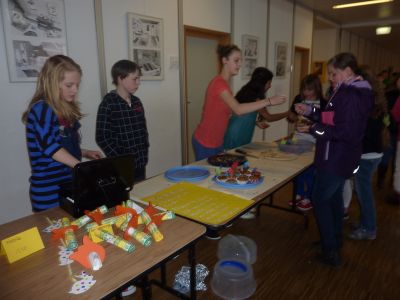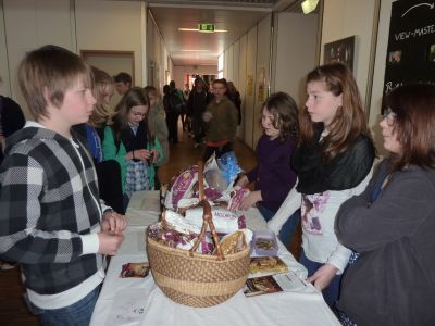 Gleichzeitig mit der Solibrotaktion fand ein 1.kleiner Ostermarkt statt. Im Morgenkreis der Realschule entschlossen sich die Schülerinnen und Schüler der 7r3 zusammen mit ihrer Klassenlehrerin einen solchen durchzuführen und bastelten in einigen Stunden für diese Veranstaltung. Der Erlös – so wollten es die Schüler – soll dem Saarbrücker Theresienheim gespendet werden. Die Klasse wird den Erlös, der noch nicht bekannt ist , persönlich überreichen .