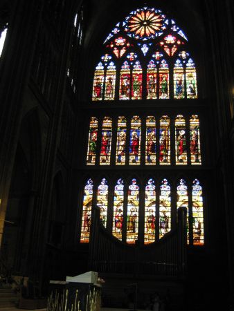 Vor der Kathedrale trafen wir unsere Stadtführerin. Sie begann uns auf Französisch über Metz zu erzählen. Natürlich konnte man nicht jedes Wort verstehen, was aber auch nicht nötig war, da man den Sinn der Sätze meist gut verstand. Sollte man etwas aber einmal doch nicht verstanden haben, so war die Dame so nett, es auf Deutsch zu übersetzen. Ihre Erklärungen zur Geschichte von Metz waren wie die Bauwerke, zu denen sie uns führte, sehr interessant. Diese Bauwerke waren unter anderem: Die Kathedrale, die Markthallen – auf Französisch Marché Couvert -, Temple Neuf, das Arsenal und der Parc des Esplanades. Nach der sehr gelungenen Führung zeigte sich sogar die Sonne, sodass einem Picknick im Parc des Esplanades nichts mehr im Weg stand.