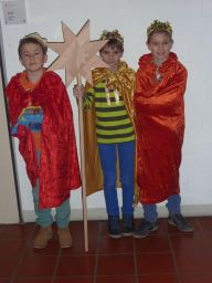 Unter dem Motto „ Segen bringen – Segen sein, gesunde Ernährung für Kinder auf den Philippinen und weltweit“ haben verschiedene Sternsingergruppen aus unseren 5er Klassen unsere Schülerinnen und Schüler, sowie Lehrer, Hausmeister, Sekretärinnen und die Damen aus der Cafeteria im Laufe des Morgens aufgesucht. Sie brachten Ihnen den Segen Gottes und sammelten Spenden für das Kindermissionswerk in Aachen, das zahlreiche Kinderhilfsprojekte auf der ganzen Welt unterstützt (vgl. www.sternsinger )
